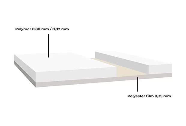 The special polymer surface provides optimal varnish transfer and resistance to chemical care products, and the strong polyester base preserves the size of the plate during work and enables its multiple usage.